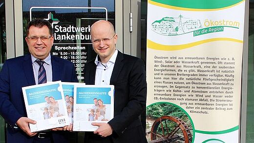 Ab sofort steht allen interessierten Bau- und Sanierungswilligen in und um Blankenburg ein „Leitfaden für energieeffizientes Bauen und Sanieren“ bei den Stadtwerken Blankenburg zur Verfügung. Im Rahmen eines Arbeitsgesprächs hat der Geschäftsführer der Landesenergieagentur Sachsen-Anhalt GmbH (LENA), Marko Mühlstein, in dieser Woche drei Bauherrenmappen an den Geschäftsführer der Stadtwerke Blankenburg, Tim Schlenkermann, übergeben. Diese liegen nun im Kundencenter der Stadtwerke, Börnecker Str. 6, 38889 Blankenburg (Harz) zur Ansicht oder zum Ausleihen bereit.
