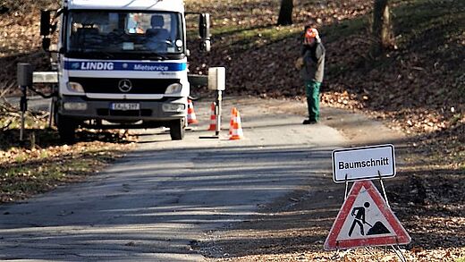 Die Stadt weist daraufhin, dass alle Stämme markiert wurden, eine unberechtigte Entnahme des Holzes führt unmittelbar zur Anzeige.