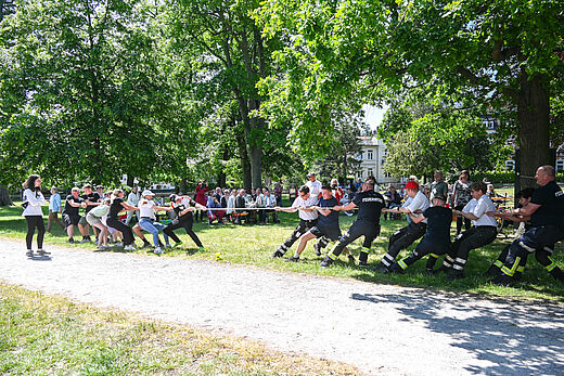 Es wurde sogar sportlich, als sich mehrere teilnehmende Tische im Tauziehen miteinander maßen.