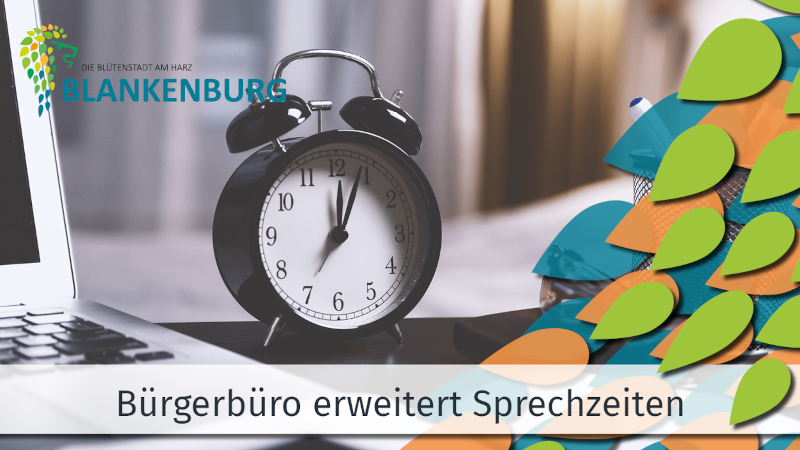 Im Sinne der Bürgerfreundlichkeit erweitert das Blankenburger Bürgerbüro ab Freitag, den 1. März 2024, seine Sprechzeiten um zwei Stunden.