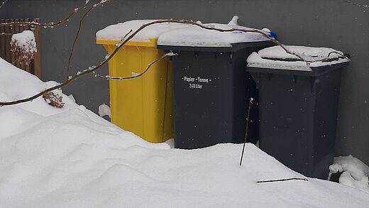 Eine kurzfristige Bewältigung der Schneemengen in den Ortschaften und Zufahrtstraßen erscheint unrealistisch. Die Entsorgung wäre in vielen Fällen nicht möglich. Ein Herausstellen der Tonnen oder Gelben Säcke würde die teils chaotische Situation auf den Straßen weiter erhöhen.