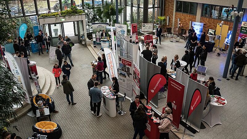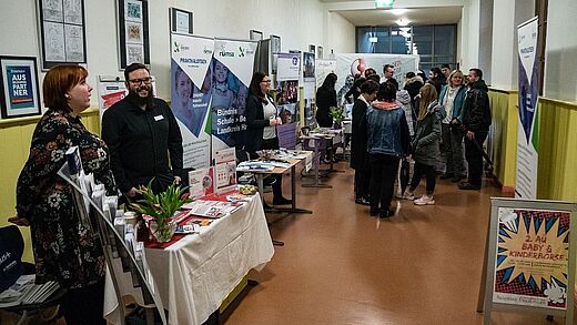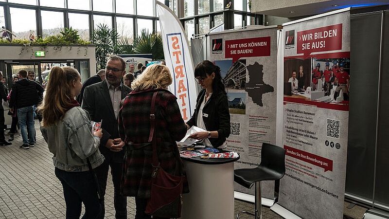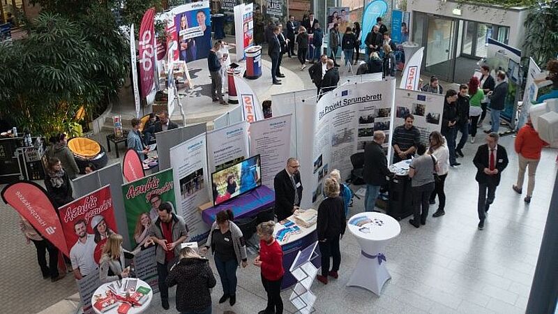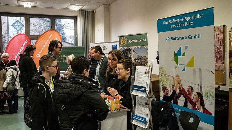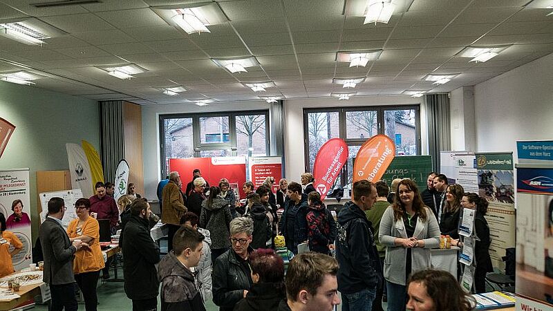 So richtete sich die Veranstaltung in diesem Jahr nicht nur an die Jugendlichen, sondern erstmals auch an ihre erwachsenen Begleiter: Die ausstellenden Firmen hatten die Möglichkeit, ihre freien Stellen zu präsentieren und somit Arbeitssuchenden oder Pendlern ebenfalls Chancen auf eine Arbeitsstelle in der Region aufzuzeigen.