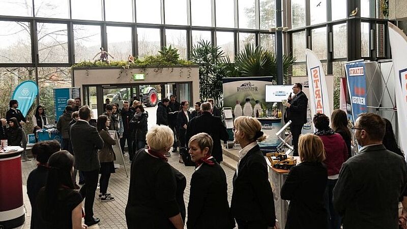 Aber auch die Aussteller haben sich einiges einfallen lassen, um die Aufmerksamkeit der Besucher zu gewinnen. Blickfang vor dem Gebäude war ein Traktor der Marke Fendt, den Landwirt Christian Klamroth aus Börnecke mitgebracht hatte.