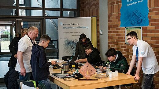 Am Stand der Plättner Elektronik GmbH konnten sich interessierte Messegästen praktisch betätigen und ihr Geschick im Umgang mit dem Lötkolben zeigen. Ein weiteres Highlight war ein sogenannter „Alterssimulations-Anzug“ des GVS. Dabei konnten die Besucher selbst erfahren, mit welchen Einschränkungen ältere oder kranke Menschen leben müssen und wie wichtig es ist, diesen Menschen zu helfen.