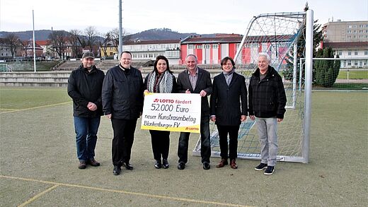 Eine Woche vor Weihnachten überraschte Lotto-Geschäftsführerin Maren Sieb, im Beisein von Blankenburgs Bürgermeister Heiko Breithaupt, den Blankenburger FV 1921 mit einem Lotto-Förderscheck über 52.000 Euro. Das Geld soll für die Erneuerung des Kunstrasens im Sportforum verwendet werden.