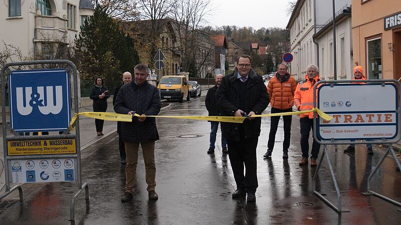 Knapp sechs Monate nach dem symbolischen Spatenstich, und eine Woche früher als geplant, konnte ein erster Meilenstein beim Ausbau der Herzogstraße erreicht werden. Am 20. November 2020 hat Bürgermeister Heiko Breithaupt den ersten Bauabschnitt, im Bereich von Hausnummer 8 bis zum Kreisverkehr am ehemaligen Bahnhofshotel, für den Verkehr frei gegeben. Bei der Freigabe dankte der Bürgermeister den Planern, Bauunternehmen und Partnern sowie dem Blankenburger Bauamt für den reibungslosen Bauverlauf. Sein Dank galt auch dem Blankenburger Stadtrat, der der Finanzierung des Bauvorhabens einstimmig zugestimmt hatte.