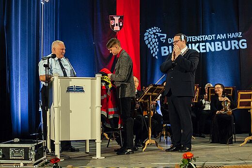 Wie es bereits der Brauch ist, bot der Abend wieder Raum für Ehrungen von Blankenburger Persönlichkeiten. Der 15-jährige Cattenstedter Jonas Sobol, der im Juli des vergangenen Jahres seinen