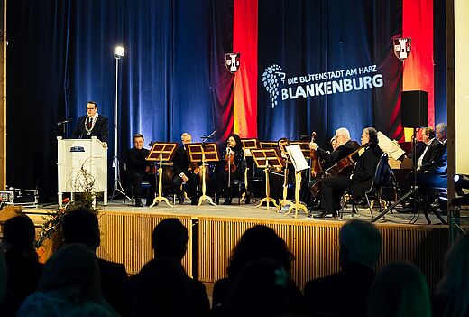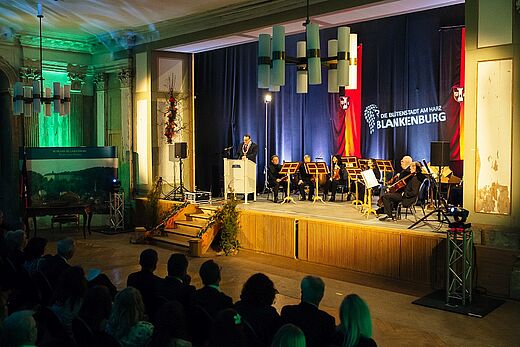 Erneut bot die historische Kulisse des Großen Schlosses den festlichen Rahmen für den Jahresempfang der Stadt Blankenburg (Harz). Die Vorsitzende des Stadtrats Birgit Kayser begrüßte im Theatersaal