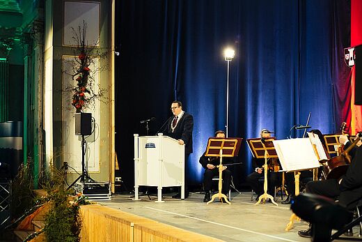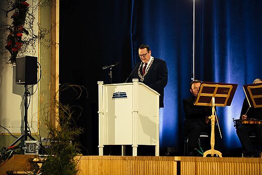Im Mittelpunkt des Abends stand die Ansprache von Bürgermeister Heiko Breithaupt, der die Gäste mitnahm auf eine Reise durch die Kernstadt und die Ortsteile. Dabei verdeutlichte er, welche