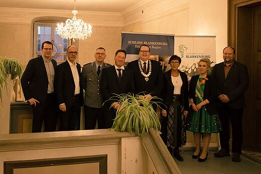 Bürgermeister Heiko Breithaupt dankte den zahlreichen Mitwirkenden darunter der Freiwilligen Feuerwehr, die den Transport der Gäste zum Schloss und die Absperrung übernommen hatte sowie den Soldatinnen und Soldaten des Bundeswehr-Standorts für die Ehrenformation zur Begrüßung der