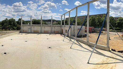 Der neue, voraussichtliche, Termin für die Fertigstellung der Turnhalle ist Januar 2021. Erst nach der Montage der Dachbinder können Folgearbeiten wie die Abdichtung des Hallendaches, die Montage der Außenfassade, der Ausbau des Hallenkörpers sowie die Gestaltung des Außenbereiches, erfolgen.