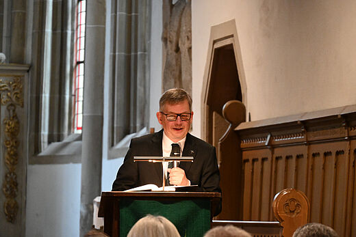 In seiner Festrede erinnerte sich Dr. Christoph Meyns an sein Erleben und Wahrnehmen der deutschen Wiedervereinigung. Als damals 28-jähriger befand er sich zu der Zeit als Stipendiat in Papua-Neuguinea – und die Wende bekam er nur am Rande mit. Nach seiner Rückkehr lernte er die Ostdeutschen kennen und die Herausforderungen, die sich ihnen stellten. Die Wiedervereinigung war eine unfassbare Leistung.