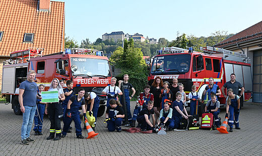 Wehrleiter Dr. Alexander Beck und Jugendwartin Anne Nickell nahmen den symbolischen Scheck gern entgegen. „Wir werden das Geld für den Bollerwagenbau beim Zeltlager im kommenden Jahr nutzen“, so Anne Nickell. Das Zeltlager wird für alle Feuerwehren des Landkreises durch den Kreisfeuerwehrverband organisiert und beinhaltet unterschiedliche Wettkämpfe. Beim diesjährigen Zeltlager in Darlingerode konnte der Blankenburger Nachwuchs in der Altersklasse 14 bis 17 den ersten Platz im Orientierungslauf belegen.