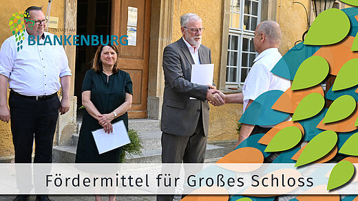 Gern gesehene Gäste auf dem Großen Schloss Blankenburg sind Staatsminister und Chef der Staatskanzlei des Landes Sachsen-Anhalt, Rainer Robra, und Bundestagsabgeordnete Heike Brehmer. Erst kürzlich konnte André Gast, Vizepräsident des Vereins Rettung Schloss Blankenburg und ehrenamtlicher Geschäftsführer der Großes Schloss Blankenburg GmbH, beide wieder in der Blütenstadt im Schloss empfangen. Dabei kamen sie nicht mit leeren Händen.