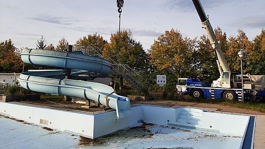 Nach der Demontage werden neue Fundamente gesetzt, um anschließend eine neue Rutsche aus Edelstahl zu montieren. Die Arbeiten sollen noch in diesem Jahr beendet werden.