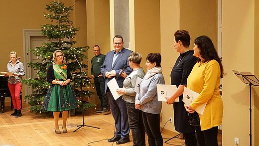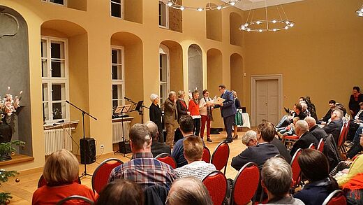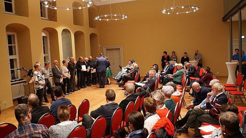 Der feierliche Festakt im Kleinen Schloss stand unter dem Motto „Ehrenamt im Verein“. Bürgermeister Heiko Breithaupt überreichte, gemeinsam mit Blütenkönigin Anne I., jedem persönlich eine Urkunde als Zeichen der Wertschätzung. Die Geehrten waren sichtlich dankbar für die erhaltene Auszeichnung. Viele nutzten die Möglichkeit sich selbst, ihr Ehrenamt und den eigenen Verein vorzustellen oder, um unter den Anwesenden neue Vereinsmitglieder zu werben. Denn auch in der Blütenstadt habe viele Vereine mit Nachwuchssorgen zu kämpfen.