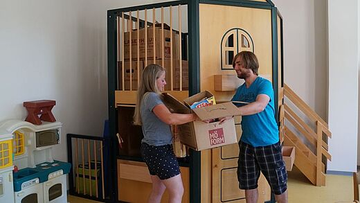 Den Kindern und Erziehern war das am Umzugstag egal, „Hautsache wir haben unsere alte Kita wieder“, heißt es einstimmig. Ein großes Dankeschön richtet Einrichtungsleiterin Regina Großert noch einmal an alle Eltern. Diese hatten die Betreuung ihrer Kinder am Freitag, 18. Juni selbst organisiert, damit der Umzug ohne Probleme vonstattengehen konnte.