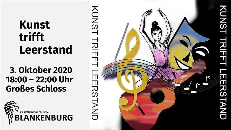 Am Samstag, den 03.10.2020, findet zum zweiten Mal die Aktion "Kunst trifft Leerstand“ in Blankenburg (Harz) statt.