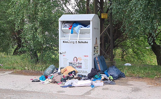 Ein weiteres Problem: Immer wieder werden Gegenstände einfach neben den Containern abgestellt – insbesondere, wenn diese bereits voll sind. Auch das ist nicht erlaubt.
