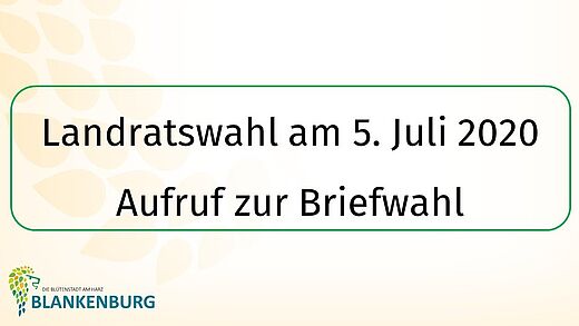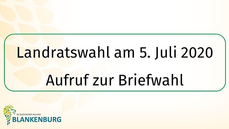Da auch bei der anstehenden Wahl die Gesundheit und das Wohlergehen aller Wahlberechtigten und der ehrenamtlichen Helferinnen und Helfer oberste Priorität haben, ruft der Wahlleiter der Stadt Blankenburg (Harz) in Anbetracht des Infektionsschutzes dazu auf, vermehrt die Möglichkeit der Briefwahl zur Stimmenabgabe zu nutzen.