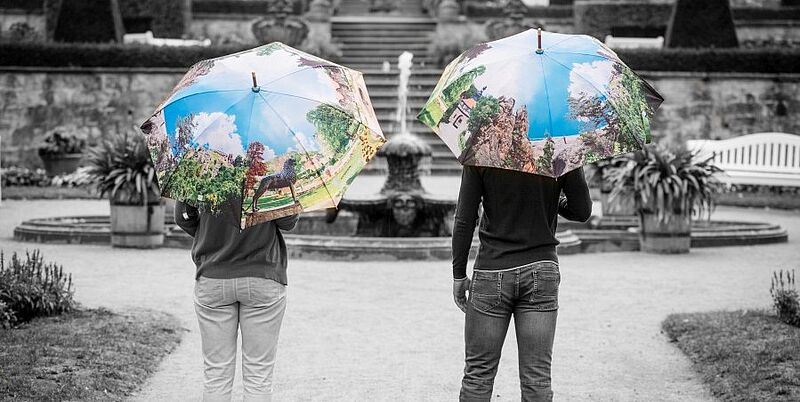 Zum einen den Blankenburger Regenschirm, bedruckt mit den bekanntesten