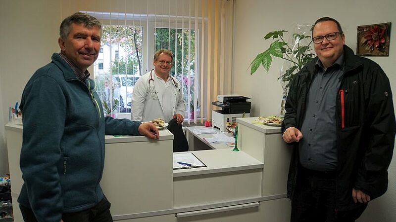 Zur Praxiseröffnung gratulierten Bürgermeister Heiko Breithaupt und Stadtratsvorsitzender Klaus Dumeier persönlich. „Ich freue mich, das Dr. Hotopp die Praxis in unserer Stadt eröffnet hat und damit einen wichtigen Beitrag für die medizinische Versorgung unserer Bürgerinnen und Bürger leistet“., so der Bürgermeister. Für sein zukünftiges Schaffen wünschten der Bürgermeister und der Stadtratsvorsitzende dem Mediziner und seinem Team viel Erfolg.