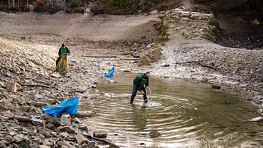 Allerdings hat der niedrige Wasserstand auch eine gute Seite. Mitglieder des Wildfisch- und Gewässerschutz 1985 Wernigerode e.V. nutzten dies für eine spontane Säuberungsaktion. Nachdem Ulrich Eichler, zweiter Vorsitzender des Vereins, Fotos von dem leeren Gewässer sah, organisierte er die Aktion. Bereits am nächsten Tag sammelte er gemeinsam mit seinen Vereinskameraden zerbrochene Flaschen, Plastikmüll, Schrott aber auch ein Schlafsack und einen Grill sowie mehrere Geländerpfosten ein. Insgesamt kamen acht Säcke Müll bei der dreistündigen Aktion zusammen.