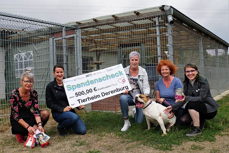 Über eine Spende von 500 Euro konnte sich das Tierheim in Derenburg freuen. Diese Summe wurde bei einer gemeinsamen Spendenaktion der Mitarbeiter der Stadt Blankenburg (Harz) mit Technischem Eigenbetrieb und Tourismusbetrieb, der Stadtwerke Blankenburg, der Blankenburger Wohnungsgesellschaft mbH, dem Trink- und Abwasserzweckverband Vorharz, der AFG Harz und der Wohnungs- und Verwaltungsgesellschaft Derenburg gesammelt. Gabriele Schnee (BWG), Rica Paschke (TAZV), Diana Stolp (Stadtwerke) und Jana Böhme (Stadtverwaltung) übergaben die Spende persönlich an Dagmar Fichtner vom Tierheim Derenburg und machten sich vor Ort ein Bild über die tägliche Arbeit der Mitarbeiter in Derenburg. Auch die Amerikanische Bulldogge Amy freute sich über die Spende. Wie Dagmar Fichtner mitteilt, soll das Geld für die medizinische Versorgung der chronisch kranken Hündin verwendet werden. Im Namen Ihrer Kollegen bedankte sie sich recht herzlich bei allen Spendern.