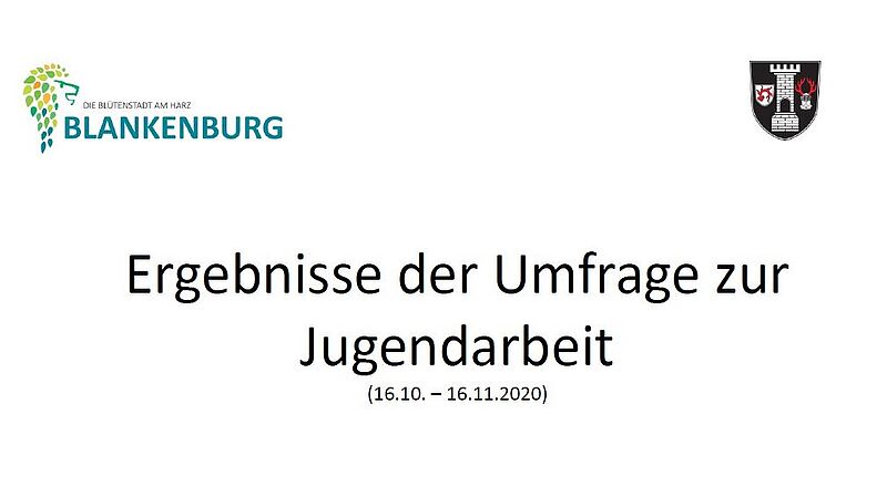 In einer vierwöchigen Internetumfrage hat das Team der Jugendarbeit der Stadt Blankenburg (Harz) die Kinder und Jugendlichen der Stadt nach ihren Freizeitaktivitäten befragt. Ziel der Umfrage war es, das Freizeitangebot der Stadt Blankenburg (Harz) und in den Ortsteilen zu optimieren und stärker nach den Wünschen und Vorstellungen der Befragten zu gestalten.