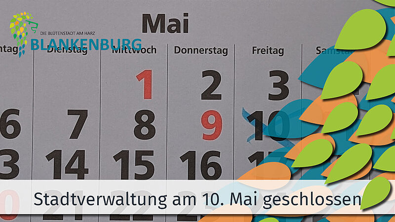 Die Stadtverwaltung bittet alle Bürgerinnen und Bürger, dies bei der Planung zur Erledigung ihrer Angelegenheiten in der Stadtverwaltung Blankenburg (Harz) zu berücksichtigen.