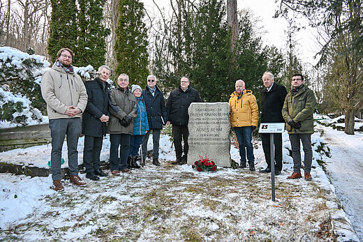 Nun wurde der sanierte Grabstein im Beisein einiger der Spenderinnen und Spender feierlich offiziell enthüllt.