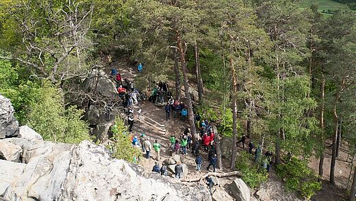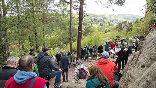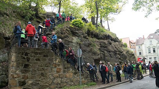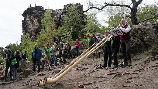 Gemeinsam mit den Schirmherren und seiner Frau Gabriele sowie Klaus Dumeier, Stellvertretender Präsident des Harzklubs begaben sich die Teilnehmer auf eine knapp vier Kilometer lange Rundwanderung über die Teufelsmauer zum Großvaterfelsen. Bei musikalischen Klängen des Blankenburger Alphorntrios konnten die Wanderer die beeindruckende Aussicht am Fuße der Felsformation genießen. Im Anschluss kamen alle Gäste bei einem Imbiss vor dem Kleinen Schloss zusammen und ließen den Tag bei interessanten Gesprächen ausklingen.