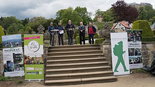 Zu der Zentralveranstaltung im Kleinen Schloss und den Barocken Gärten der Blütenstadt fanden sich mehr als 100 Wanderfreunde ein. Begrüßt wurden sie von Hans-Ulrich Rauchfuß, Präsident des DWV, Ministerpräsident und Schirmherr Reiner Haseloff sowie Bürgermeister Heiko Breithaupt. „Die Stadt Blankenburg (Harz) ist sehr stolz, als erste Kommune Sachsen-Anhalts Gastgeber sein zu dürfen und möchte alle Gäste mit ihrer Gastfreundschaft überzeugen“, so der Bürgermeister.