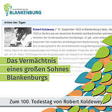 Ein Beitrag von Christoph Georg Rohrbach Zum 100. Todestag von Robert Koldewey: Das Vermächtnis eines großen Sohnes Blankenburgs Am 4. Februar 2025 jährt sich der Todestag von Robert Koldewey zum hundertsten Mal. Der in Blankenburg (Harz) geborene Archäologe und Bauforscher hat mit seinen bahnbrechenden Entdeckungen in Babylon die moderne Archäologie nachhaltig geprägt. Doch nicht nur seine wissenschaftlichen Errungenschaften, sondern auch seine enge Verbindung zu seiner Geburtsstadt...