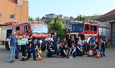 Die Jungen und Mädchen der Blankenburger Jugendfeuerwehr wurden auf ihrem jüngsten Dienstabend, der ganz im Zeichen der Ausbildung mit dem Löschschaum stand, von Mirjam Dahl Pedersen, Christa Grimme und Andreas Meyer vom Verein Blankenburg blüht auf mit einem Spendenscheck überrascht. 500 Euro kommen der Freiwilligen Feuerwehr Blankenburg aus den Erlösen des Blankenburger Bürger-Picknicks zugute. Wehrleiter Dr. Alexander Beck und Jugendwartin Anne Nickell nahmen den symbolischen Scheck gern...