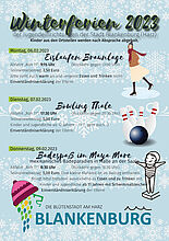 Zu allen Terminen werden die Kinder aus den Ortsteilen nach Absprache abgeholt. Die Einverständniserklärung der Eltern muss immer vorliegen. Anmeldungen bitte direkt im Roh 11 unter der Nummer 03944 2434 – von 12 bis 20 Uhr. Montag, 06.02.2023: Eislaufen in Braunlage Abfahrt „Roh 11“: 9:15 Uhr (Rückkehr gegen 13:00 Uhr)Teilnahmebeitrag: 3,50 EuroBitte zieht euch warm an und vergesst Essen und Trinken nicht! Dienstag, 07.02.2023: Bowling in Thale Abfahrt „Roh 11“: 17:30 Uhr (Rückkehr gegen...