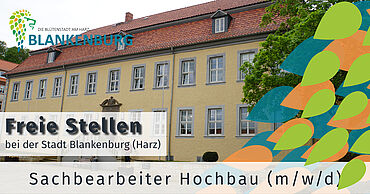 Die Stadt Blankenburg (Harz) stellt zur Ausbildung zum 01. August 2021 eine*n Auszubildende*n (m/w/d) für den Beruf Verwaltungsfachangestellte*r, Fachrichtung Kommunalverwaltung ein.