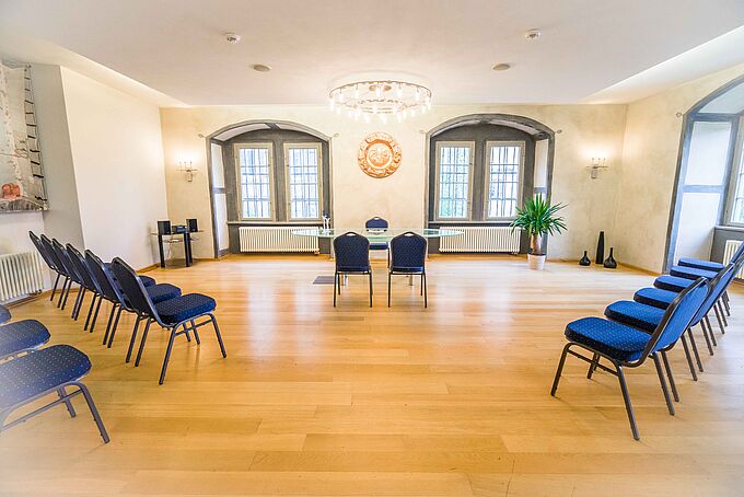Die Geschichte der Gemäuer lässt sich bis ins 15. Jahrhundert zurückverfolgen. Allein das Portal mit seiner großzügigen Treppe bietet eine einmalig schöne Kulisse für das Hochzeitsfoto. Zusätzliche Kosten für die für bis zu 30 Personen ausgelegten Räumlichkeiten fallen nicht an. Ein barrierefreier Zugang ist über den Hintereingang vorhanden.