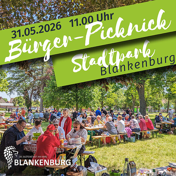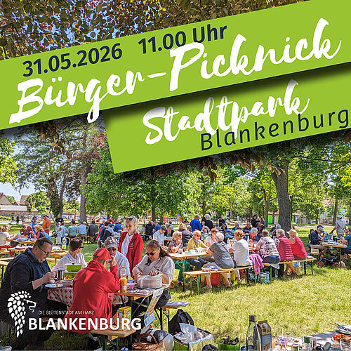 Melden Sie sich bis zum 11. Mai 2026 unter www.eveeno.com/bpn-blankenburg (Anmeldelink wird rechtzeitig freigeschaltet) an und sichern Sie sich Ihren Platz beim Bürger-Picknick im Stadtpark Blankenburg.
