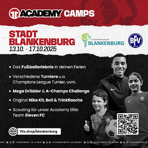 Jetzt anmelden unter www.11ts.shop/blankenburg oder den nebenstehenden QR-Code scannen.