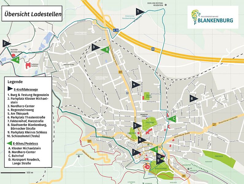Die Blankenburger Stadtwerke GmbH betreibt sieben Ladesäulen für E-Autos im gesamten Stadtgebiet.