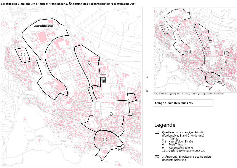 Die Stadt Blankenburg ist mit mehreren Quartieren (siehe Karte) im Städtebauförderprogramm Stadtumbau.